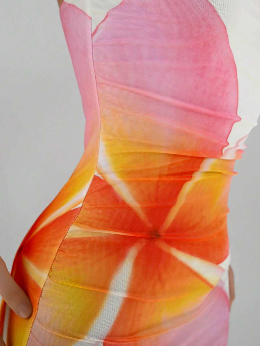Aloruh – Robe moulante mini à fines bretelles avec imprimé floral et coupe ajustée