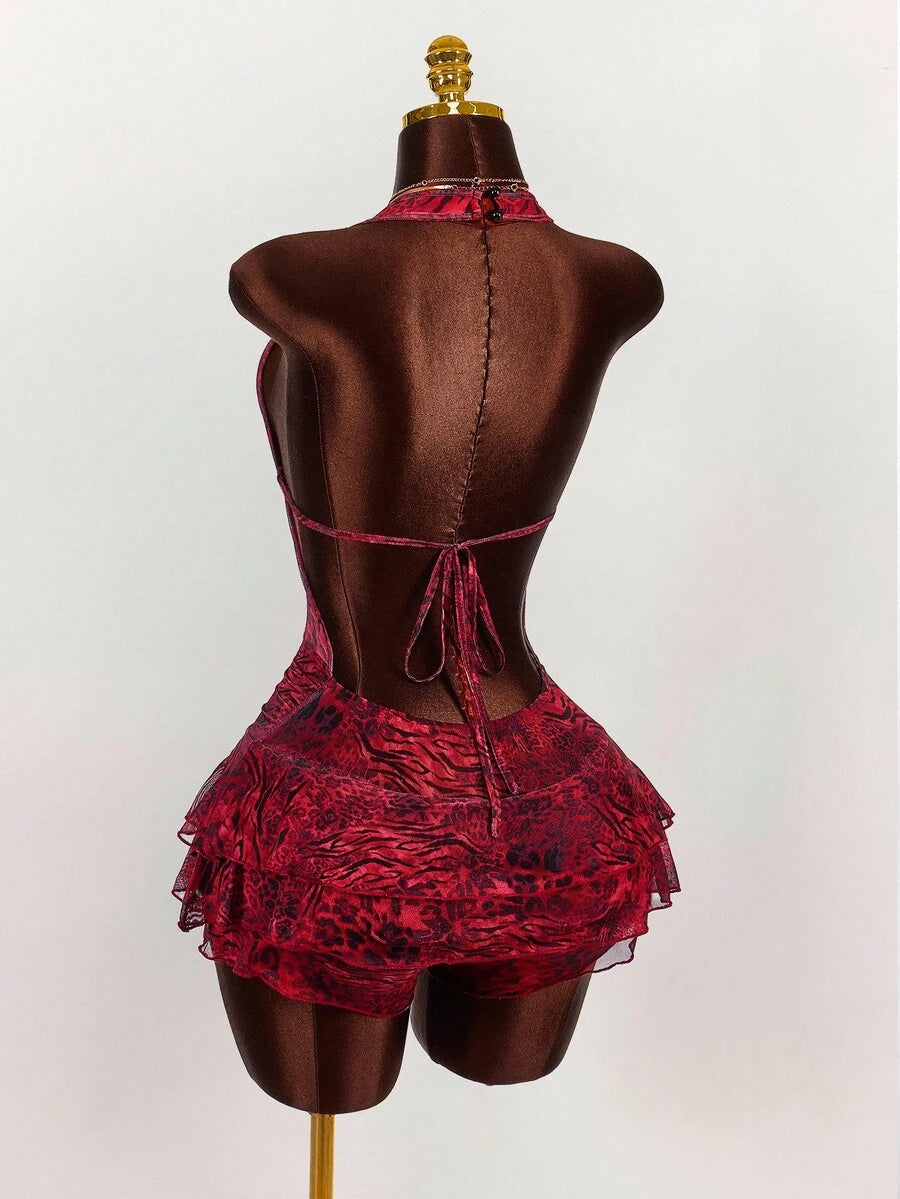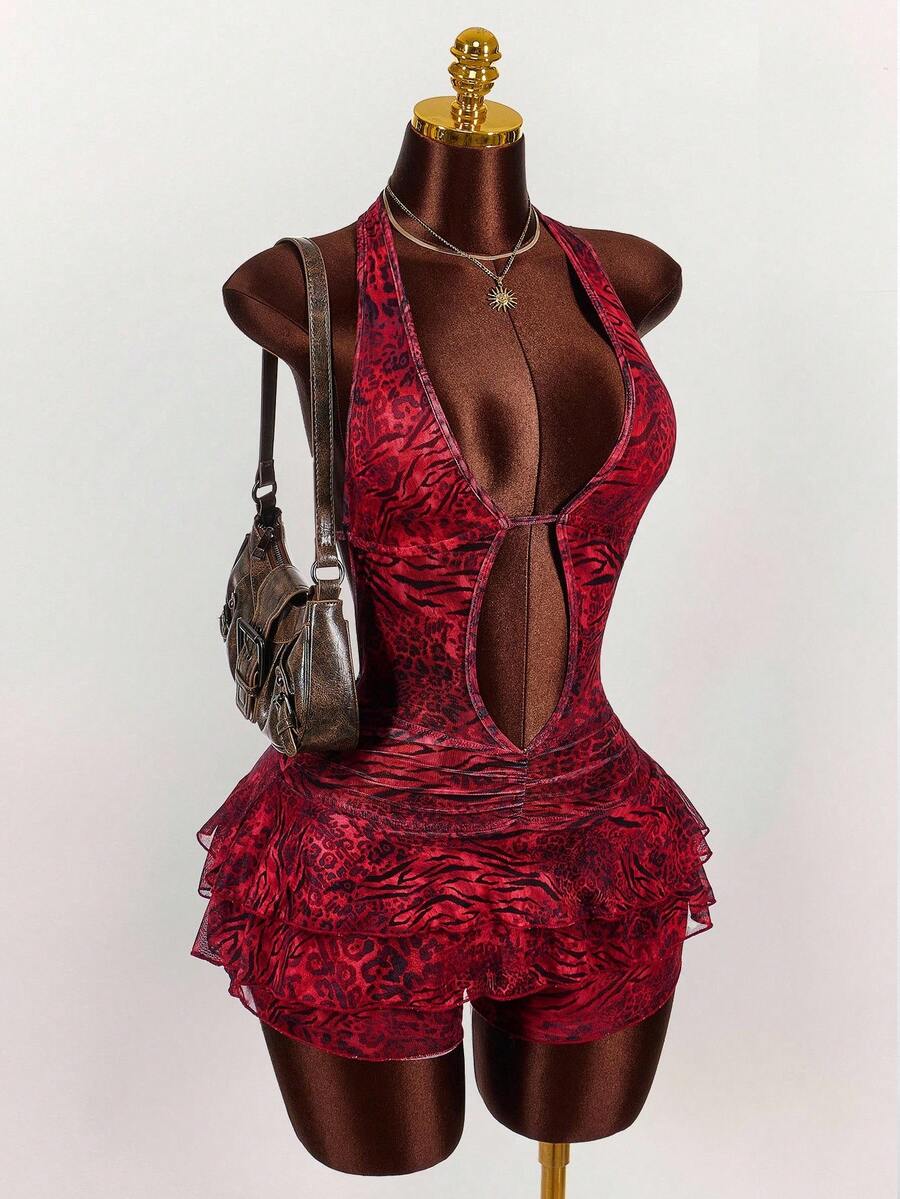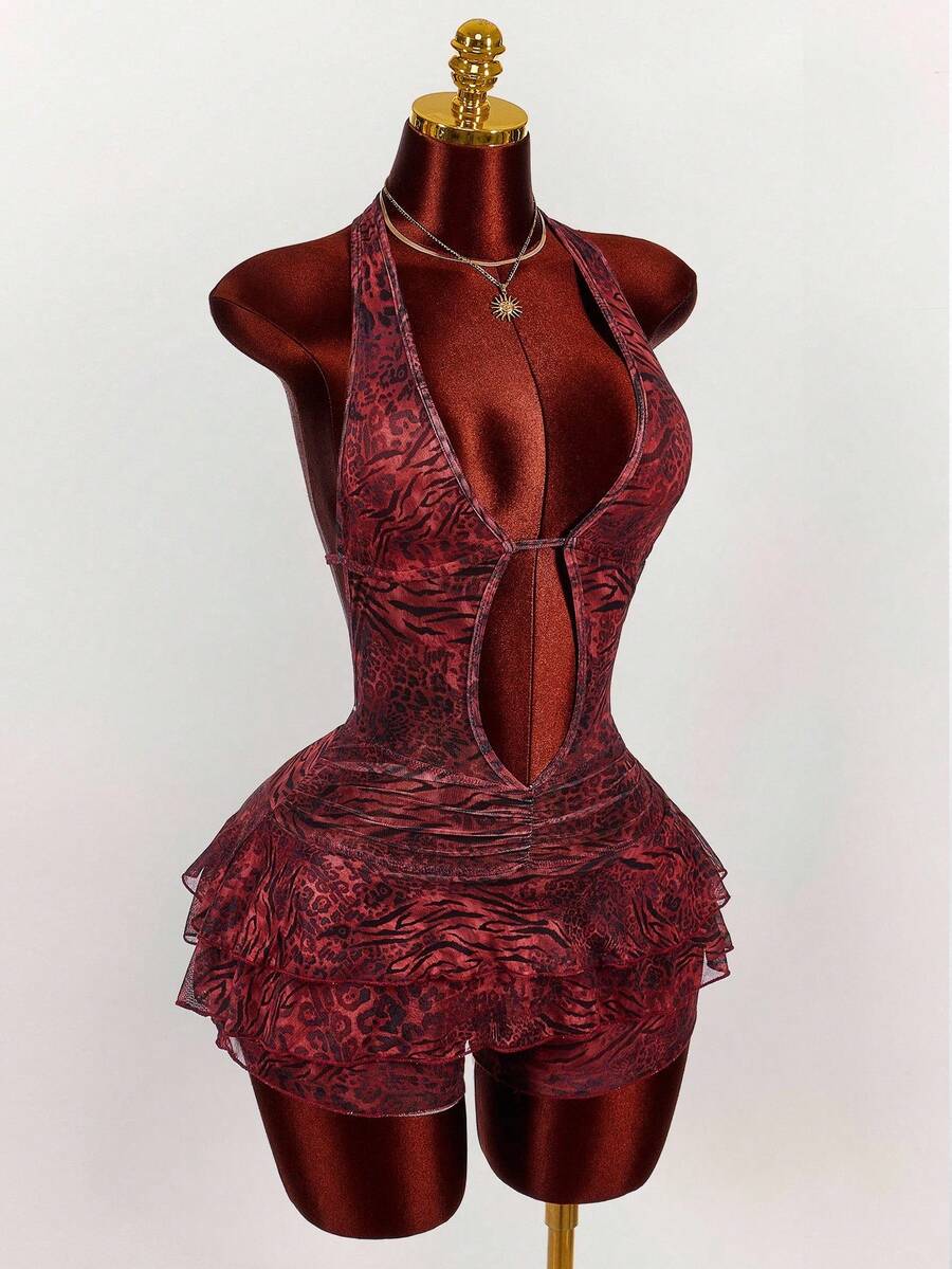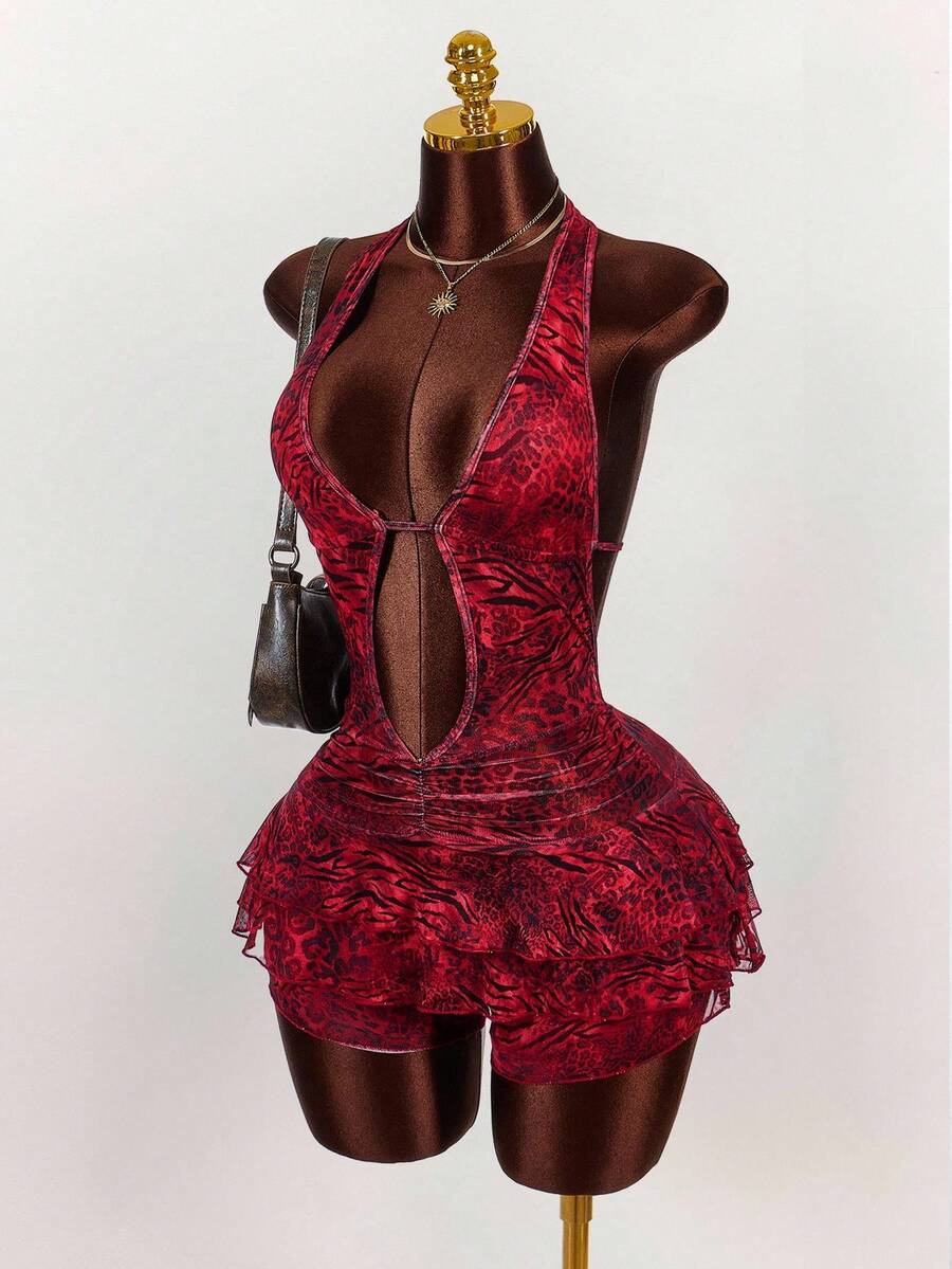 Amplova – Body sexy à imprimé animal, col ras-du-cou et décolleté plongeant