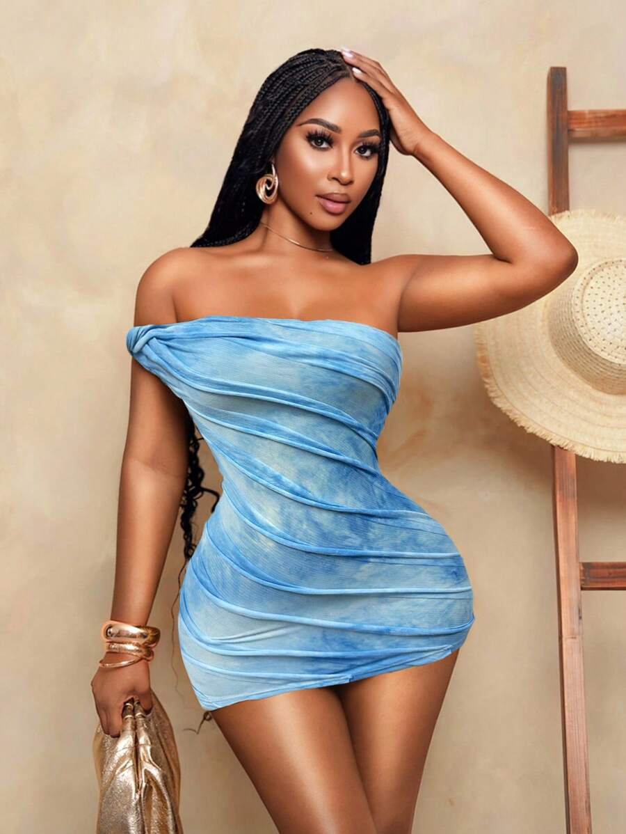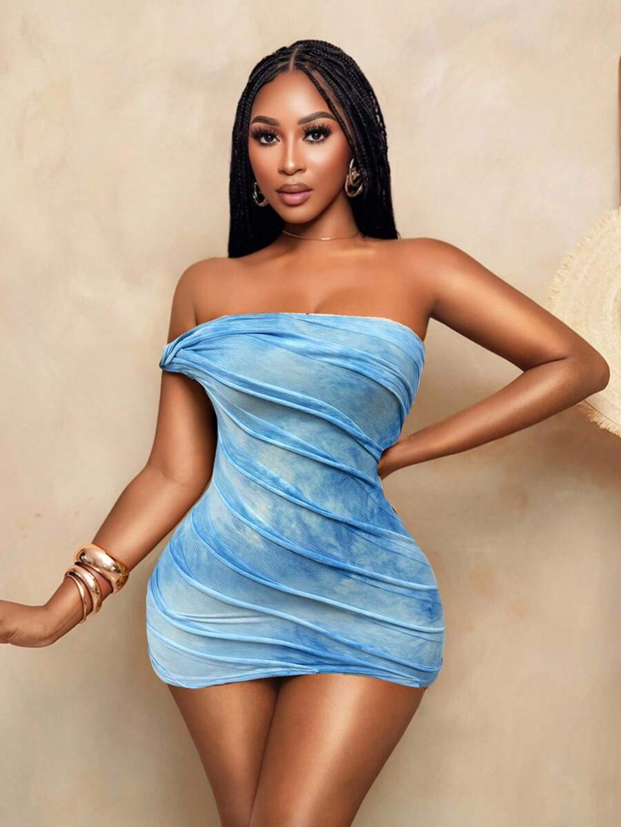 BamGleam – Robe mini à col bardot et motif tie-dye.