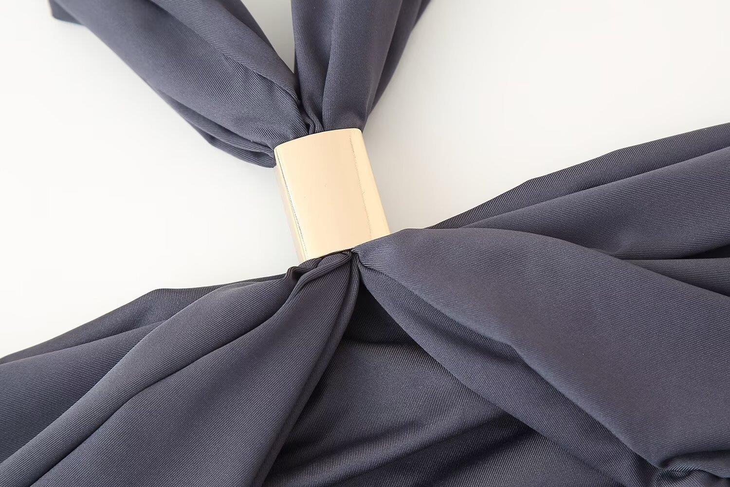 Découvrez notre sublime robe à col halter, ornée de détails métalliques, parfaite pour un look estival à la fois élégant et audacieux.