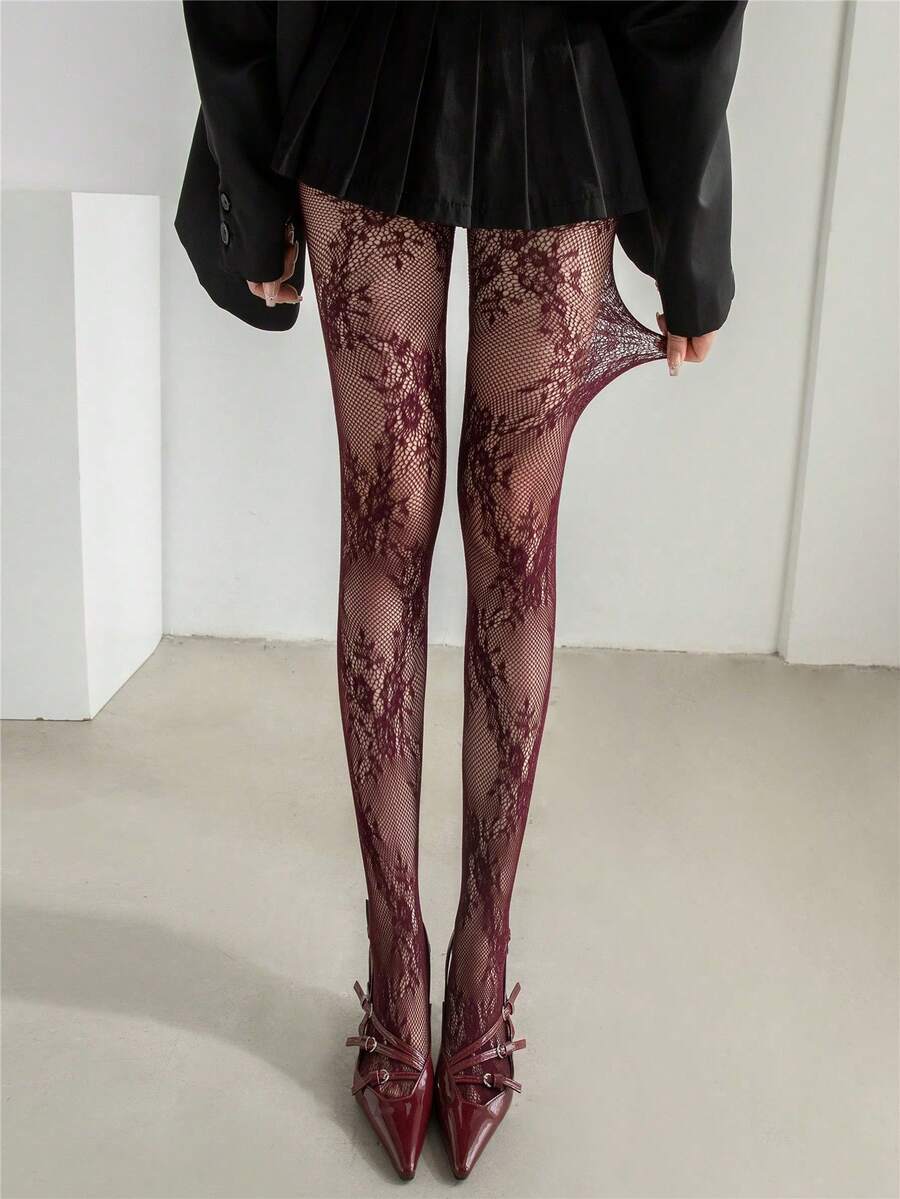 1 paire de Collants haute gamme – Design ajouré, effet amincissant, haute élasticité