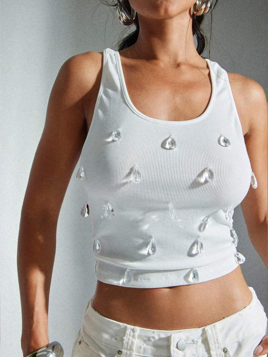 Denimoi – Débardeur à encolure dégagée avec cristaux et sans manches