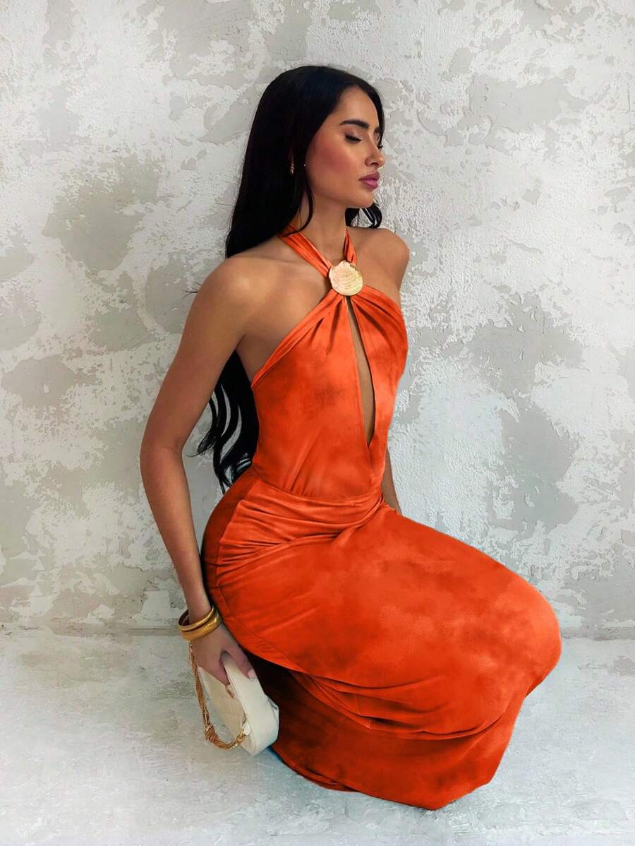 Découvrez une robe moulante et élégante, parfaite pour les occasions spéciales comme un mariage ou les festivités de Ramadan et d'Aïd al-Fitr. Avec son encolure ras-du-cou et ses détails croisés dans le dos, cette pièce saura mettre en valeur votre silhouette tout en vous offrant un style sexy et chic.
