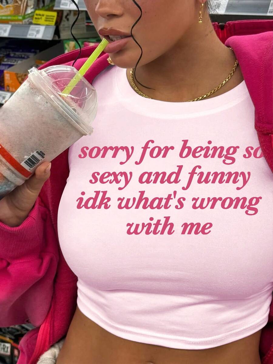 INAWLY – T-shirt ajusté à col rond et imprimé lettres pour femmes
