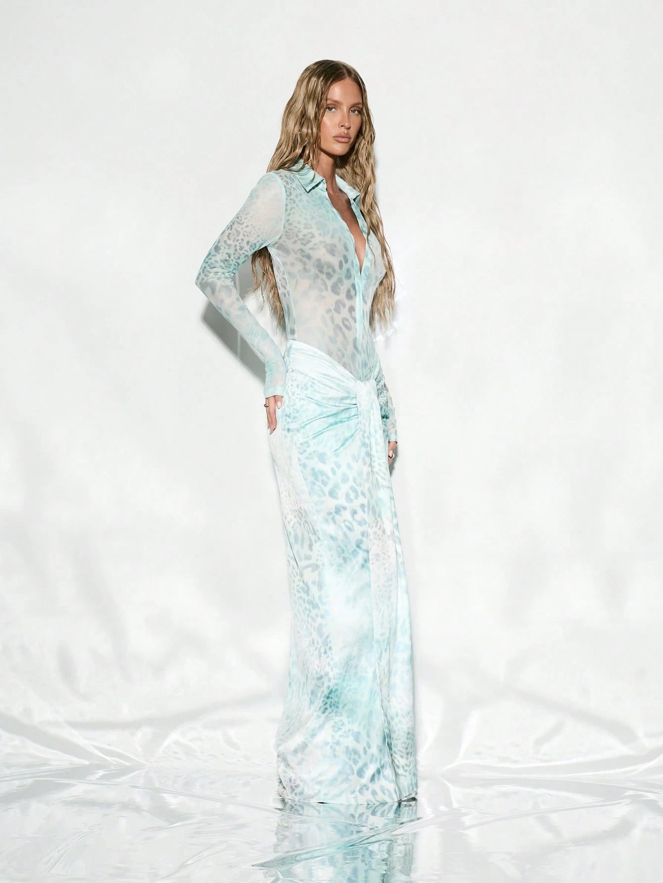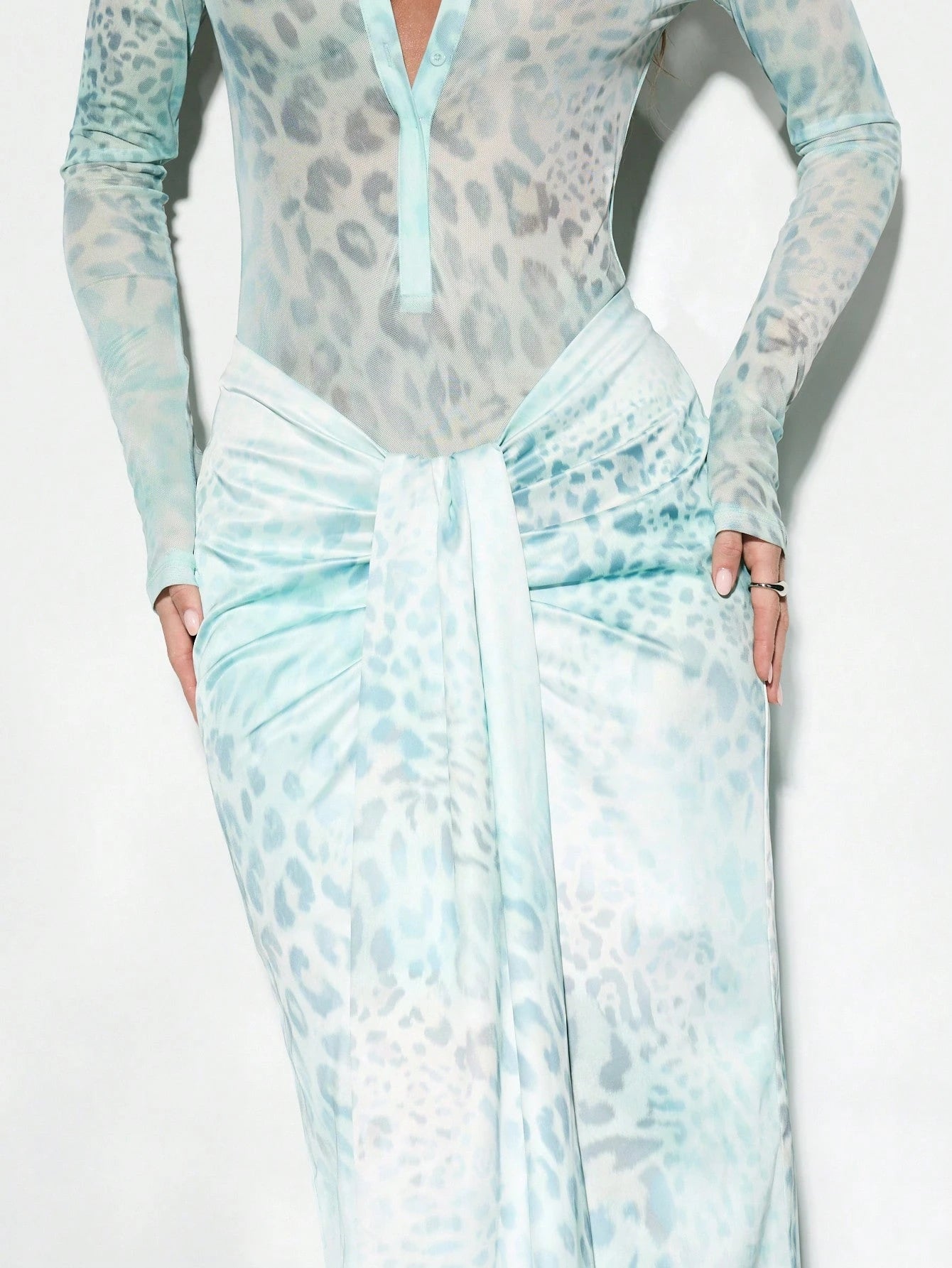 KIZN – Body moulant en maille transparente avec décolleté plongeant & jupe