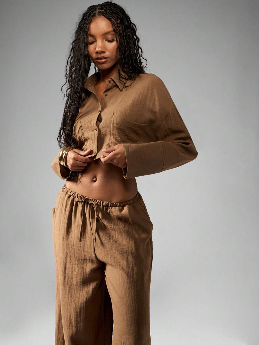MISSGUIDED – Ensemble en lin à top ample et pantalon large à taille haute