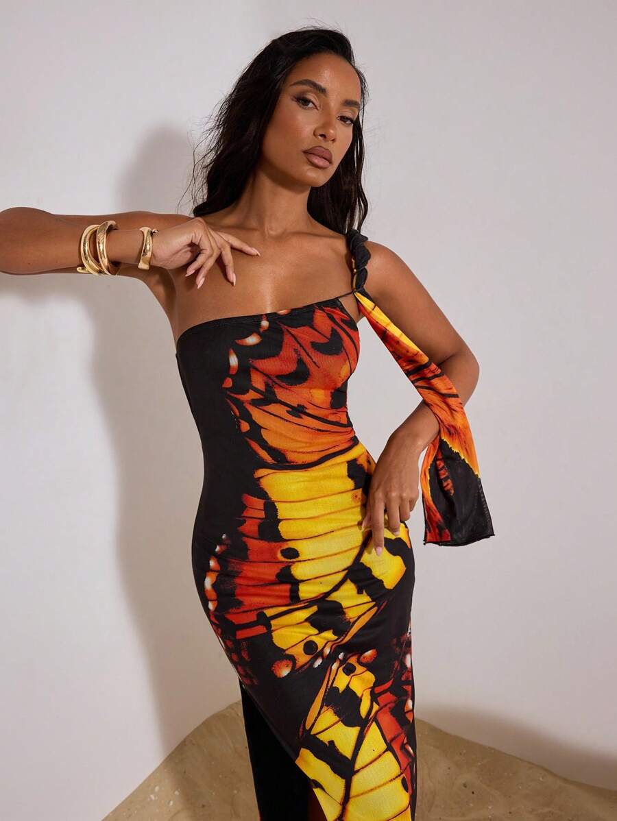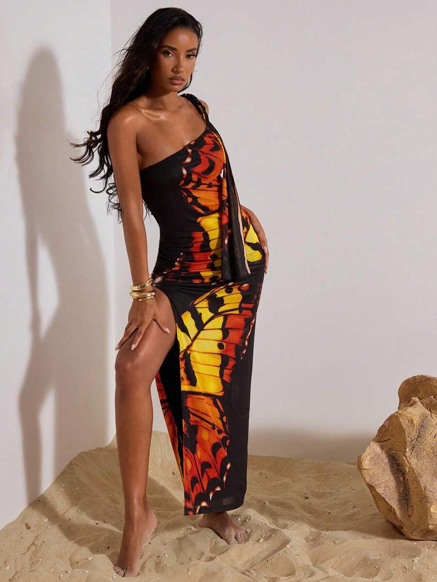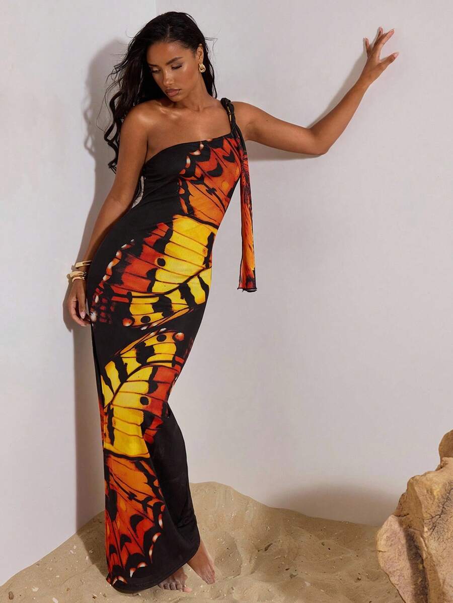 Une robe maxi élégante et asymétrique, parfaite pour briller lors des festivals et des concerts en plein air.