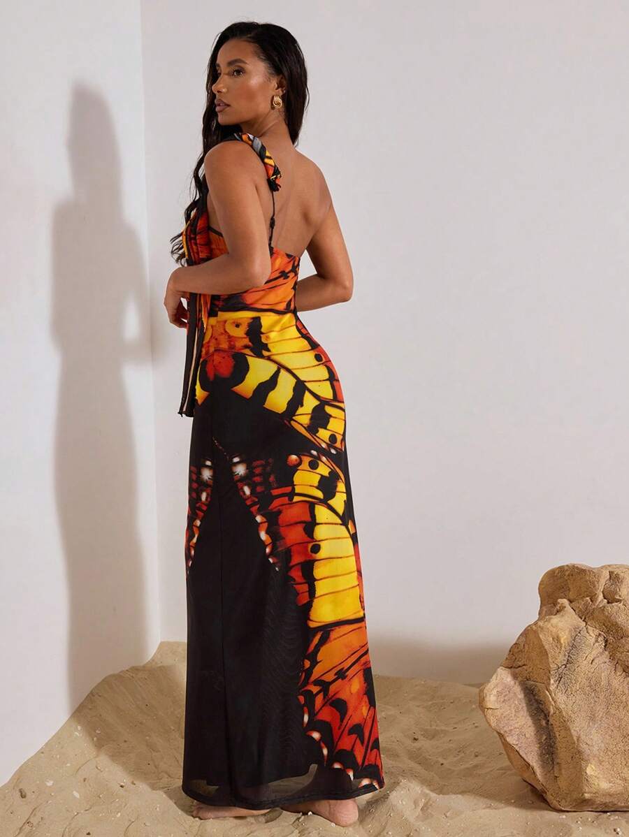 Opulessa – Robe fendue en maille tricotée avec dos nu et imprimé graphique