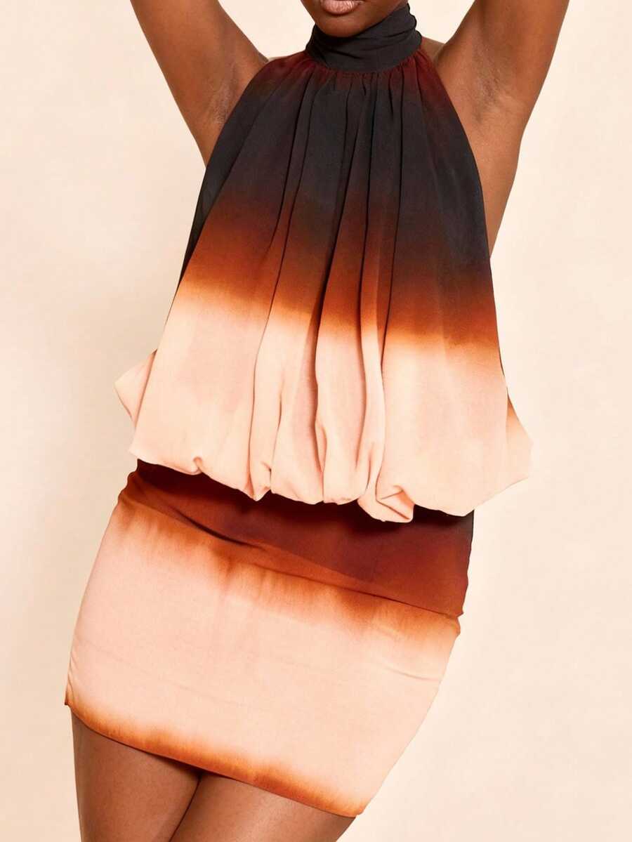 PLT - bouffant en mousseline de soie chocolat imprimé dégradé à dos nu