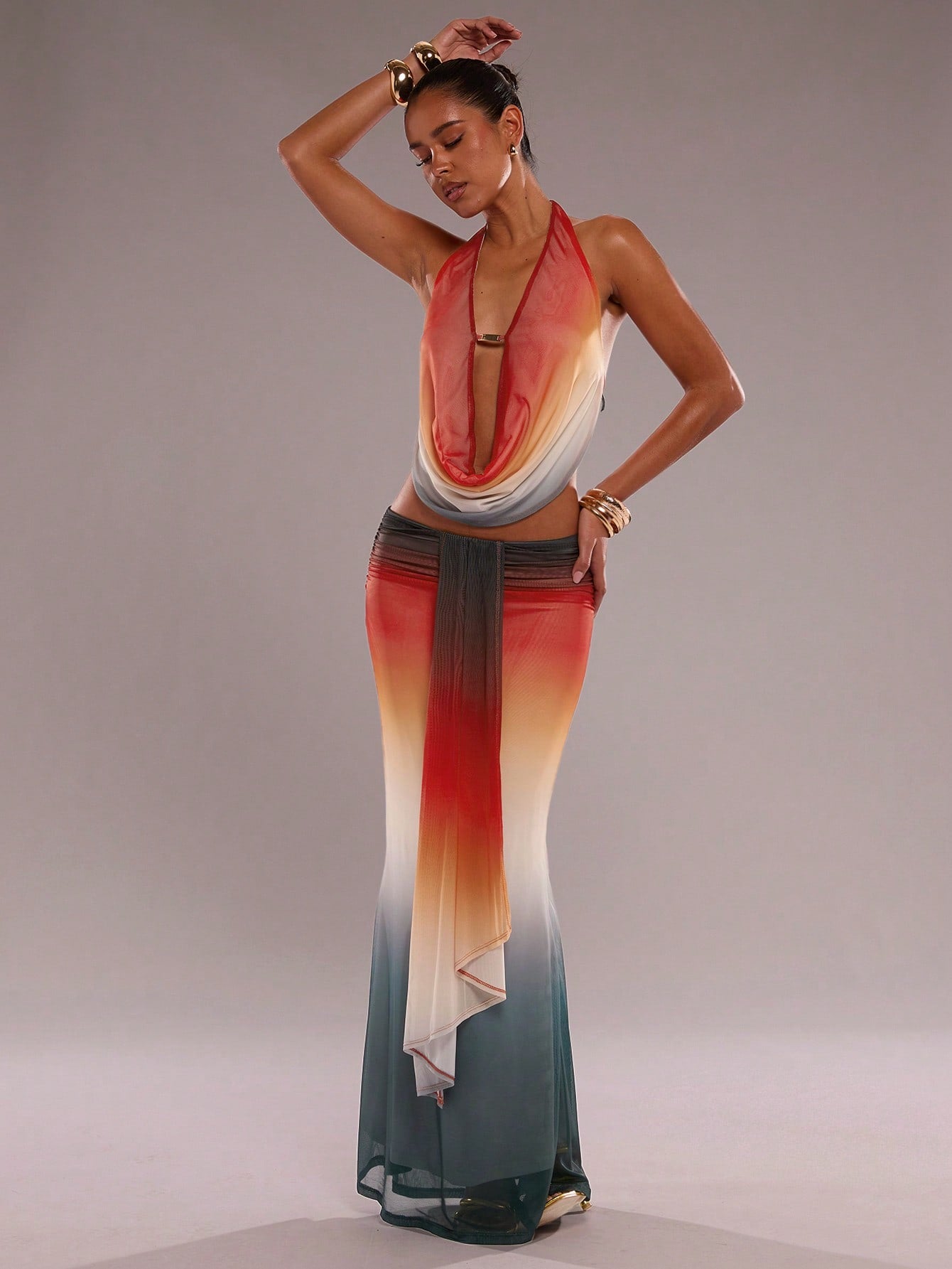 Découvrez la jupe plissée en patchwork dégradé de SHEIN BAE Ajoutez une touche de glamour à votre garde-robe avec cette jupe plissée en patchwork dégradé, parfaite pour toutes vos occasions spéciales, du Ramadan aux fêtes de l’Aïd. Avec son style sexy et sa couleur orange brûlé, elle sublime votre silhouette tout en vous offrant un look contemporain et élégant. Col | Détails Type : Jupe plissée. | Détails : Dos-nu, Drapé, Nœud. Motif : Tout imprimé. | Style : Sexy. Couleur : Orange brûlé. | Longueur : Maxi. Tour de taille : Taille basse. | Type d'ajustement : Skinny. Tissu/matériel | Composition Tissu : Tissu tricoté. | Composition : 94% Polyester, 6% Élasthanne. Doublure | Entretien Doublure : Sans doublure. | Entretien : Lavage à la main, ne pas laver à sec. Transparent | Tissu Transparent : Non. | Élasticité du tissu : Haute extensibilité. Ne manquez pas l'opportunité de briller avec cette pièce unique qui allie confort et élégance ! Commandez dès maintenant et préparez-vous à faire sensation !