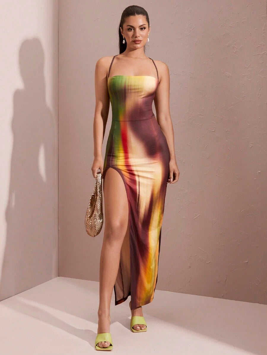 SHEIN BAE – Robe moulante à fines bretelles en tissu léger avec imprimé dégradé