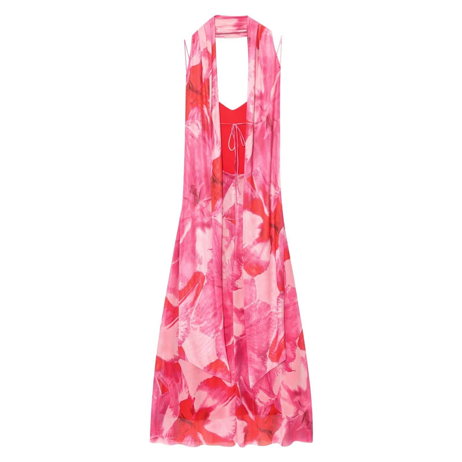 ZARA – Robe longue imprimée avec écharpe et coupe fluide